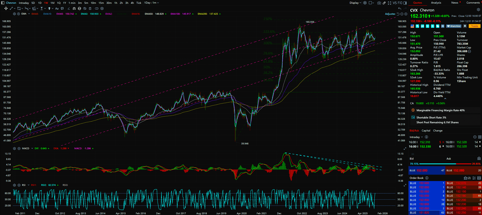 - Chart Decode: CVX is weaker than XOM, which means it has Catch-up Potential. The chart shows strong support at $140.