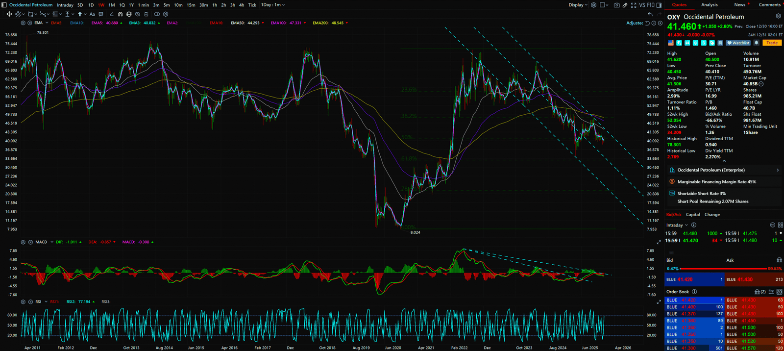 - Chart Decode: OXY is coiling. $60 is Buffett’s cost basis and the “Iron Floor.”