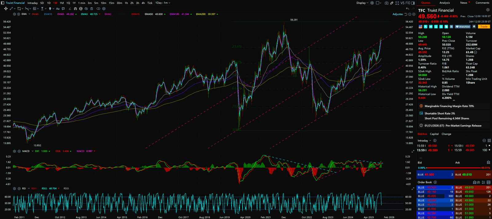 - Chart Decode: TFC has a massive overhead Gap on the chart. Technical analysis dictates: “Gaps represent targets.”