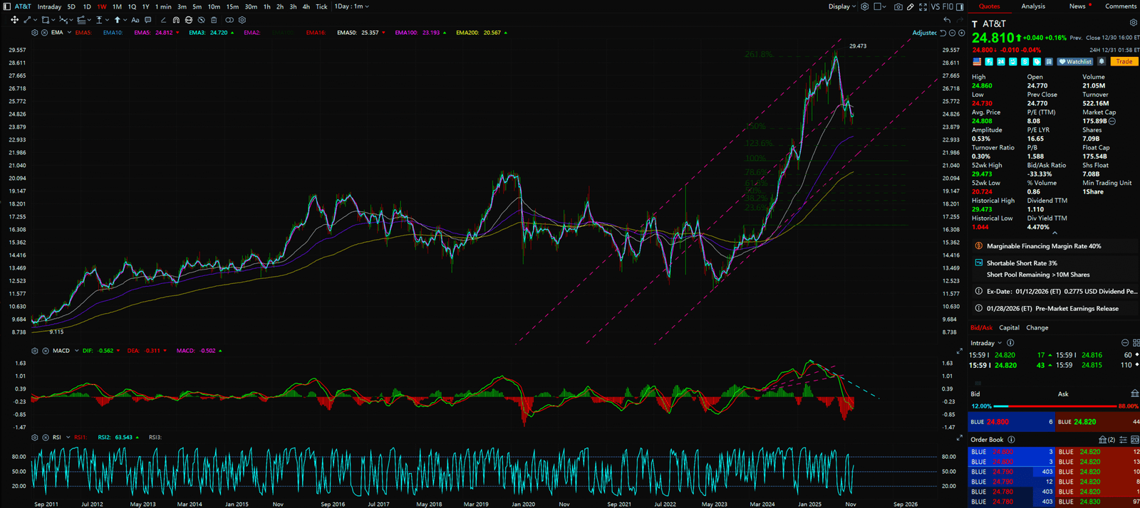- Action: Enter upon confirmation above the EMA 200. This is the defensive backbone of the telecom sector.