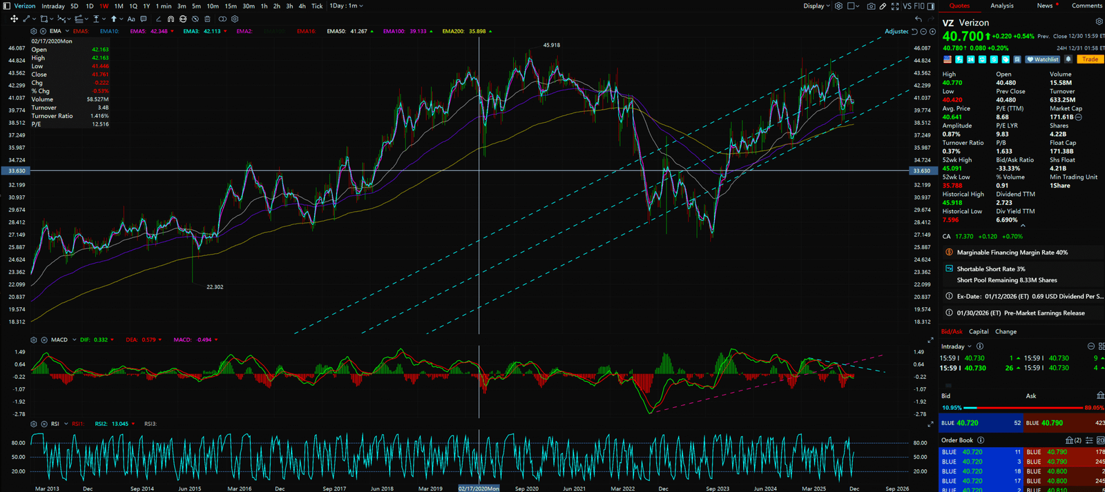 - Chart Decode: VZ is building a base. Volatility is contracting, volume is supporting.