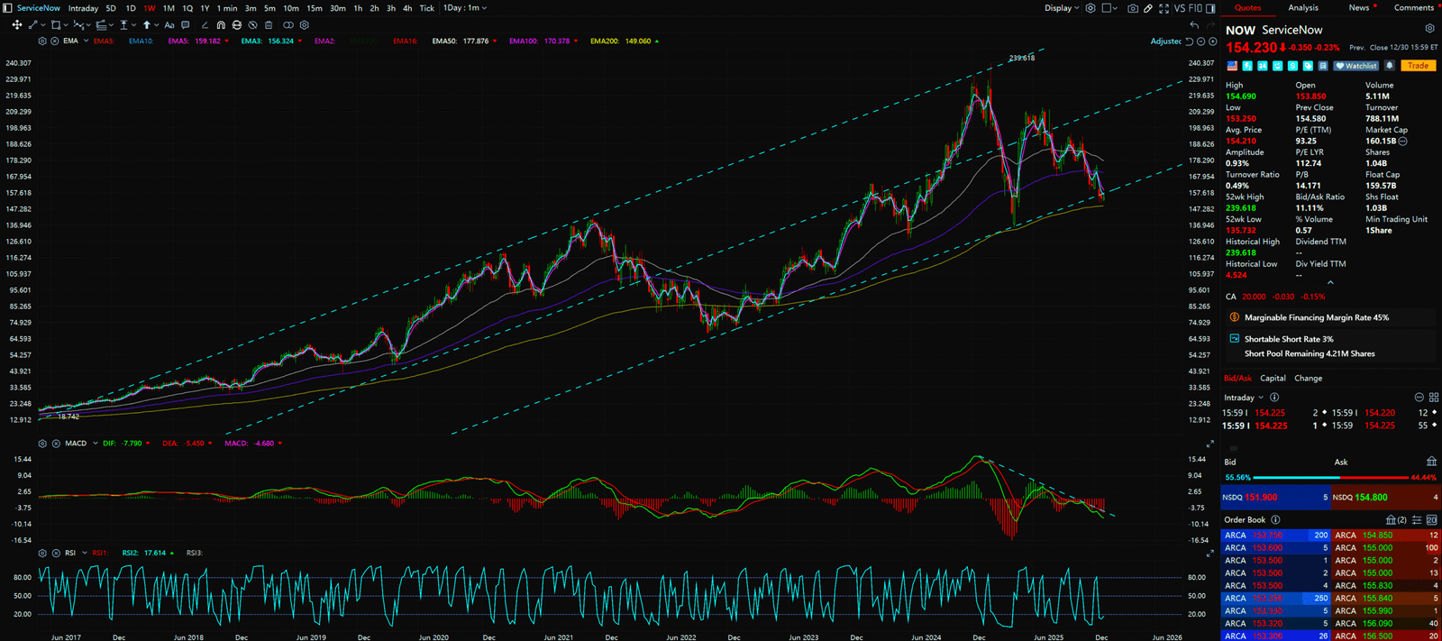 - NOW’s chart is pristine. It rides a 45-degree trendline. Even when the SPY dips, NOW refuses to sell off. This shows massive Relative Strength.