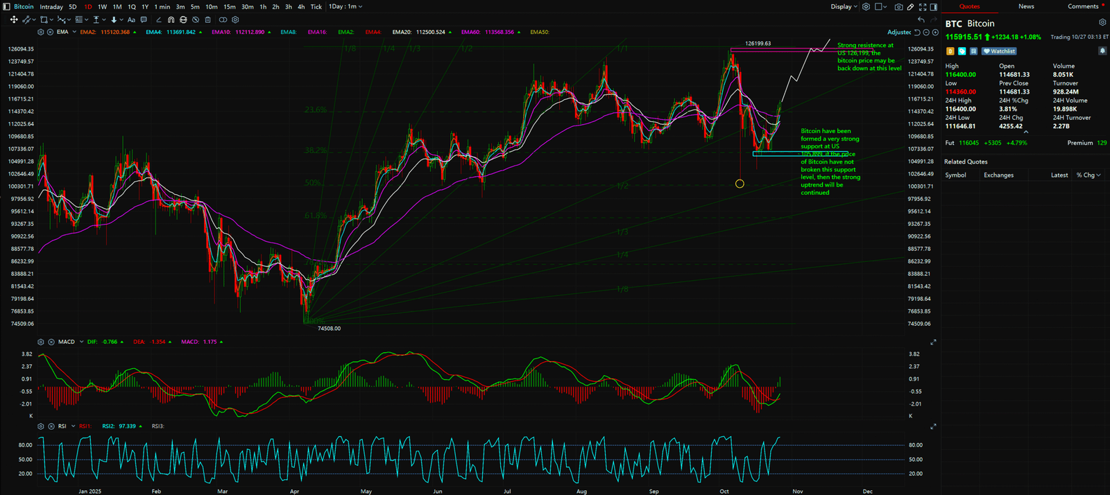 - All technical analysis below is based on a price snapshot locked in on October 27, 2025: BTC = $115,950 USD.
