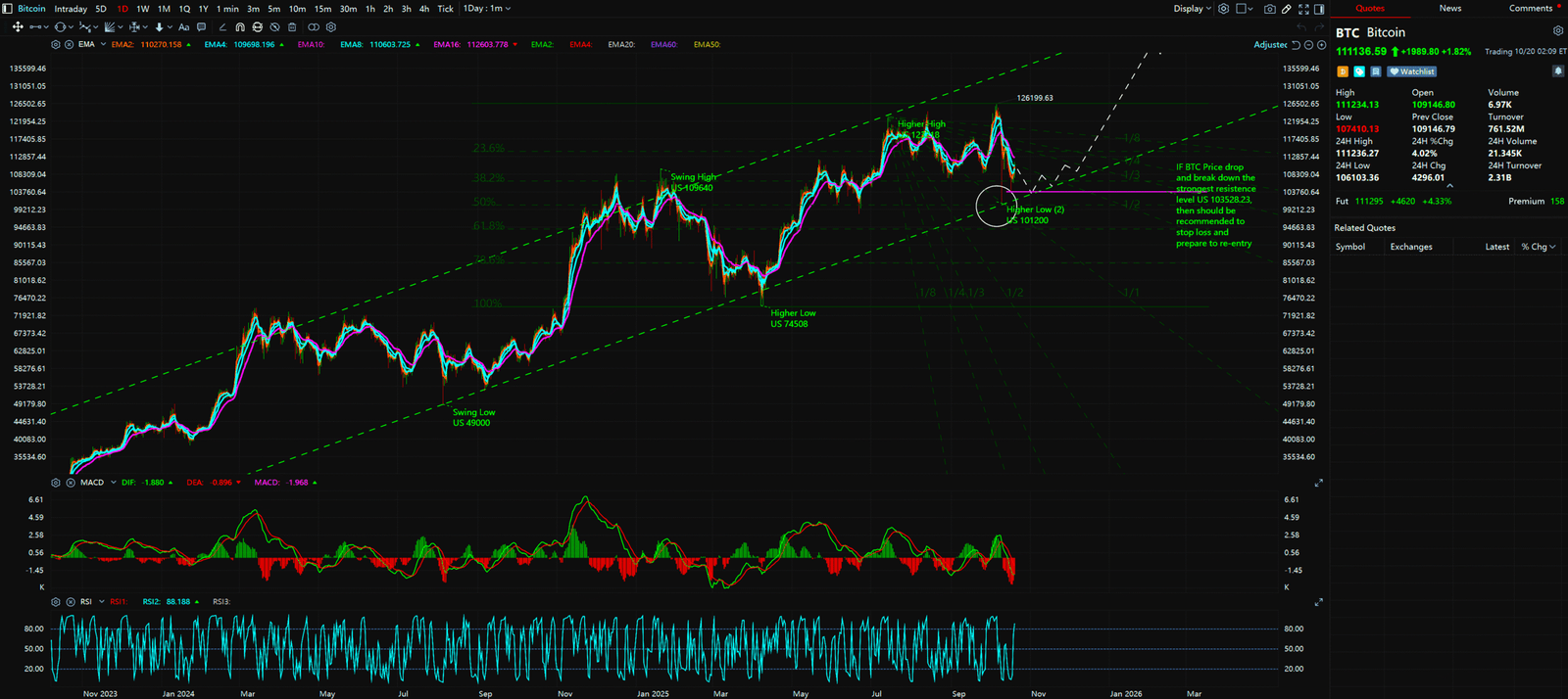 The Catalyst vs. The Real Story (Background Noise): You’ve probably seen the headlines: “BTC Recovers to $110K,” with market sentiment turning positive. This news explains why BTC is back in the spotlight, but it doesn’t tell you why the price bounced where it did or what comes next. That’s what the chart is for.