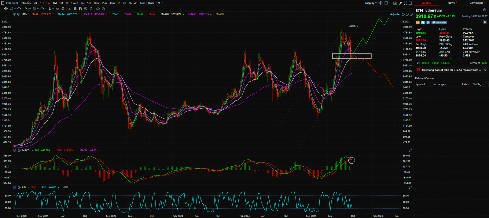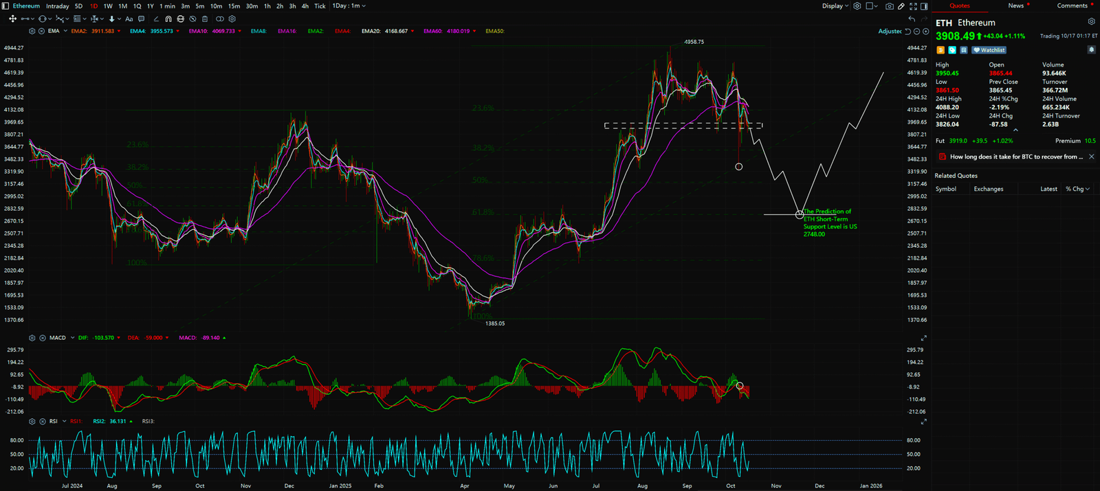 - The Advanced View (Daily Chart): The MACD indicator of daily chart shows weak short-term momentum, creating a “divergence”—the long-term trend is up, but the short-term trend is down. This explains why ETH is pulling back; it’s “refueling” for a healthier long-term journey.