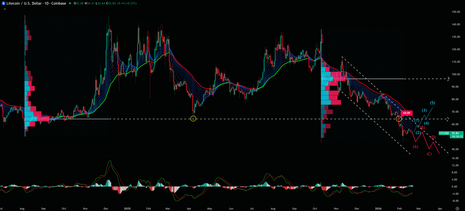 As a former bank trader with 20 years in the trenches, I am here to pour a bucket of ice water on your enthusiasm. When you see “cheap,” I see “weakness.” When you see an “opportunity,” I see a “Liquidity Trap” set by institutions. Today, I’m not going to give you vague advice. I’m going to use the Volume Profile (VPFR)—a tool used by pros—to show you explicitly why buying LTC at $53.78 is financial suicide.