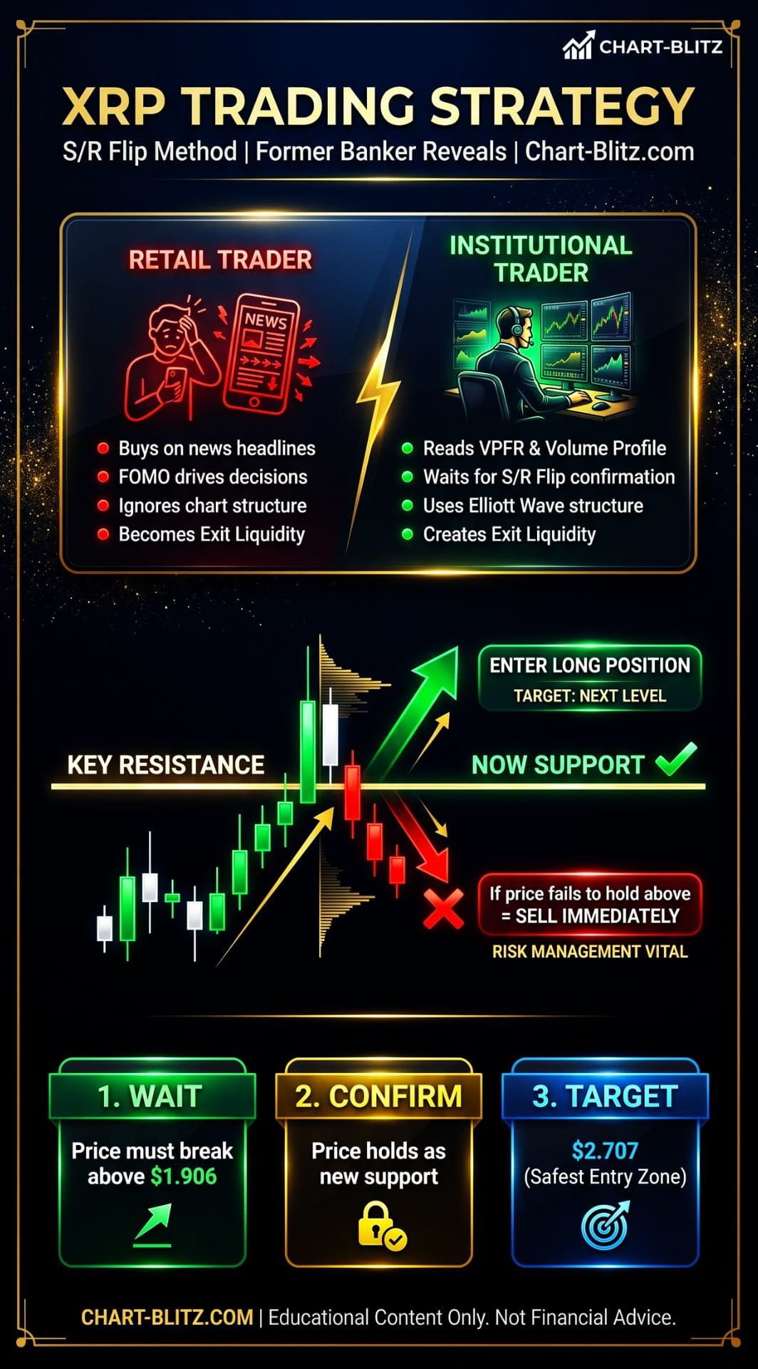 The retail decision process typically looks like this: See bullish news → Feel FOMO → Rush to enter → Become institutional ‘Exit Liquidity’. The institutional decision process is entirely different: Analyze chart structure → Identify key support/resistance → Wait for S/R Flip confirmation → Quietly exit while retail is FOMOing in.