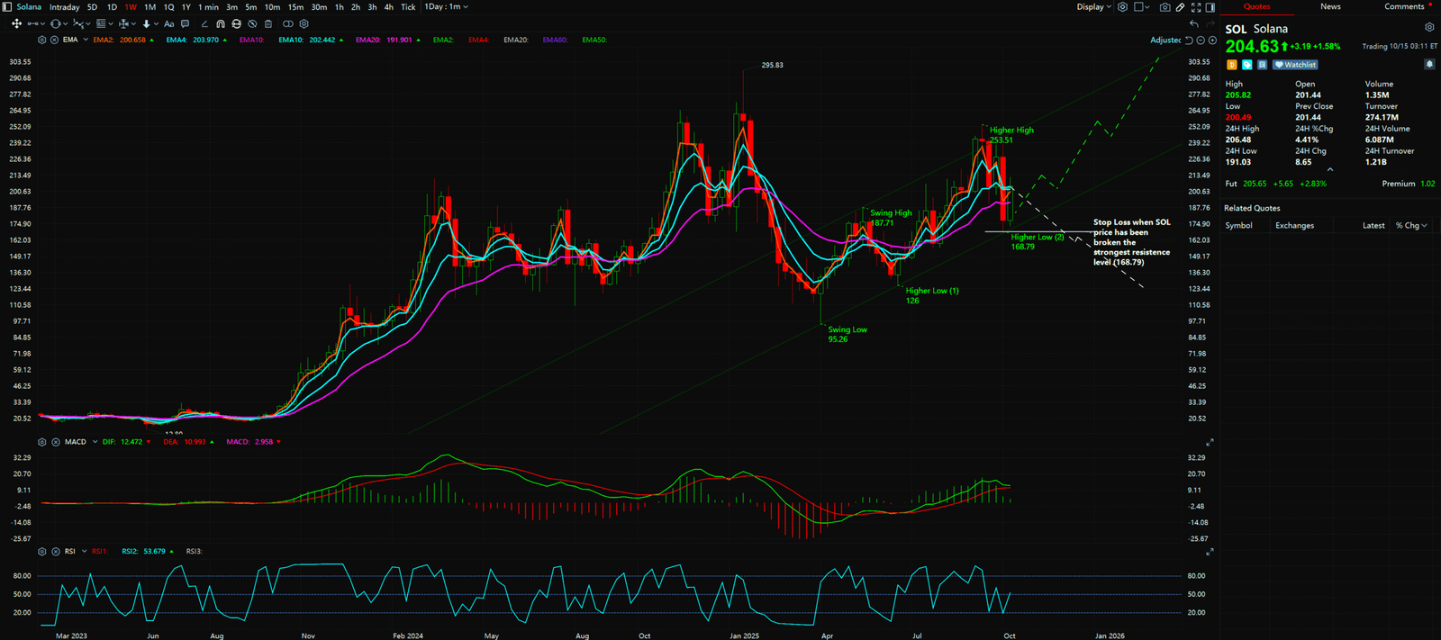 The Big Picture: SOL is Still on an Uphill Climb. Let’s take a step back. From your provided weekly chart, we can see SOL has been on a beautiful “uphill path”: