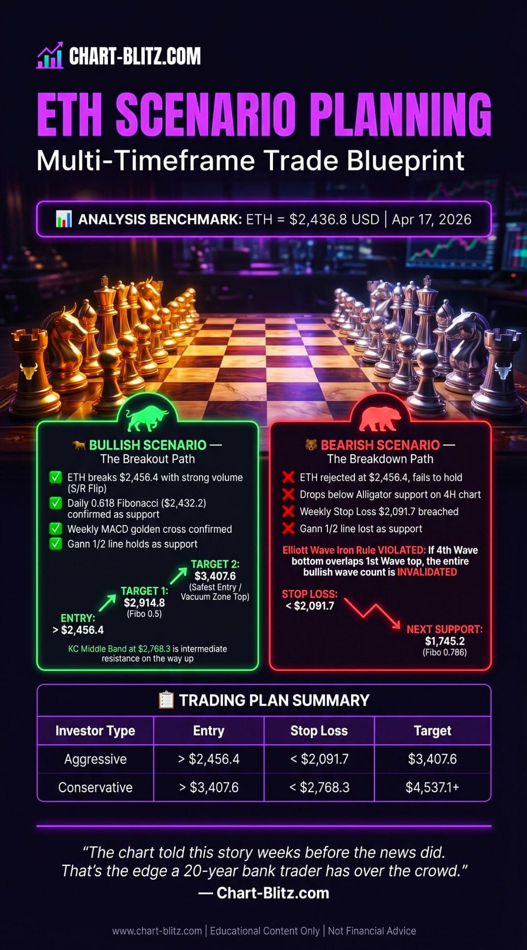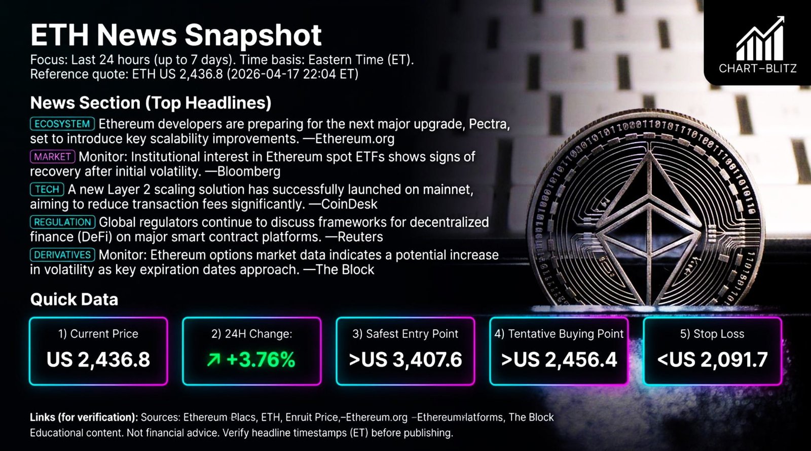 以下所有技術分析,均基於 2026 年 4 月 17 日 22:04 (ET) 鎖定之價格快照:ETH = 2,436.8 USD。請將此報告視為「分析地圖」而非實時報價。