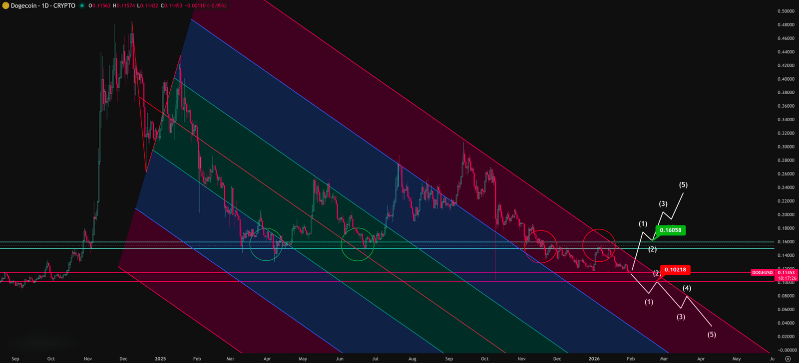 以下所有技術分析,均基於 2026年1月31日, 15:21 (GMT+8) 所鎖定嘅價格快照:DOGE = 0.11450 USD。 此價格快照為分析提供穩定參考點。所有支持、阻力及預測路徑均相對於此基準。市場價格瞬息萬變,請讀者將此報告視為一張「分析地圖」,而非實時報價。