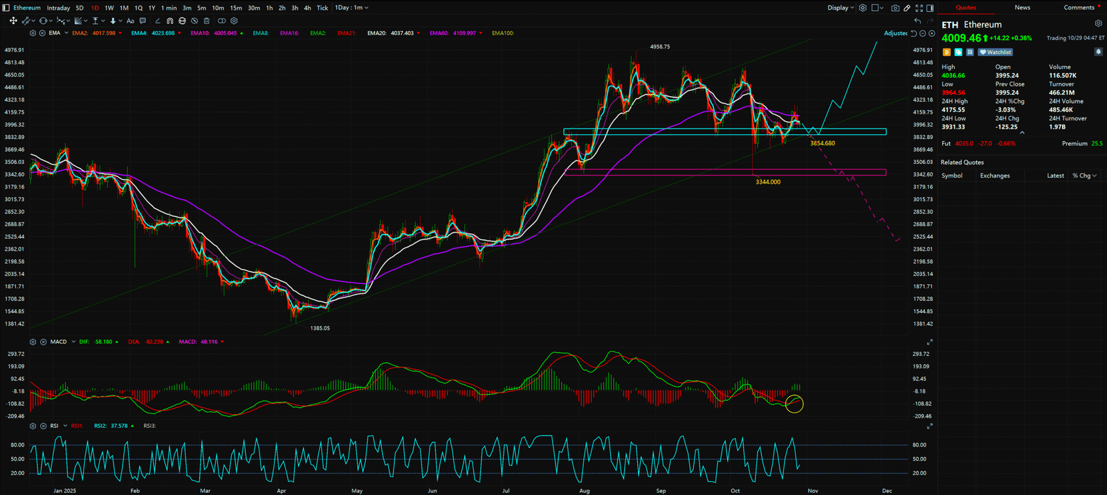 - 以下所有技術分析,均基於 2025年10月29日, 17:31 (UTC+8) 所鎖定嘅價格快照:ETH = 4,015 USD。