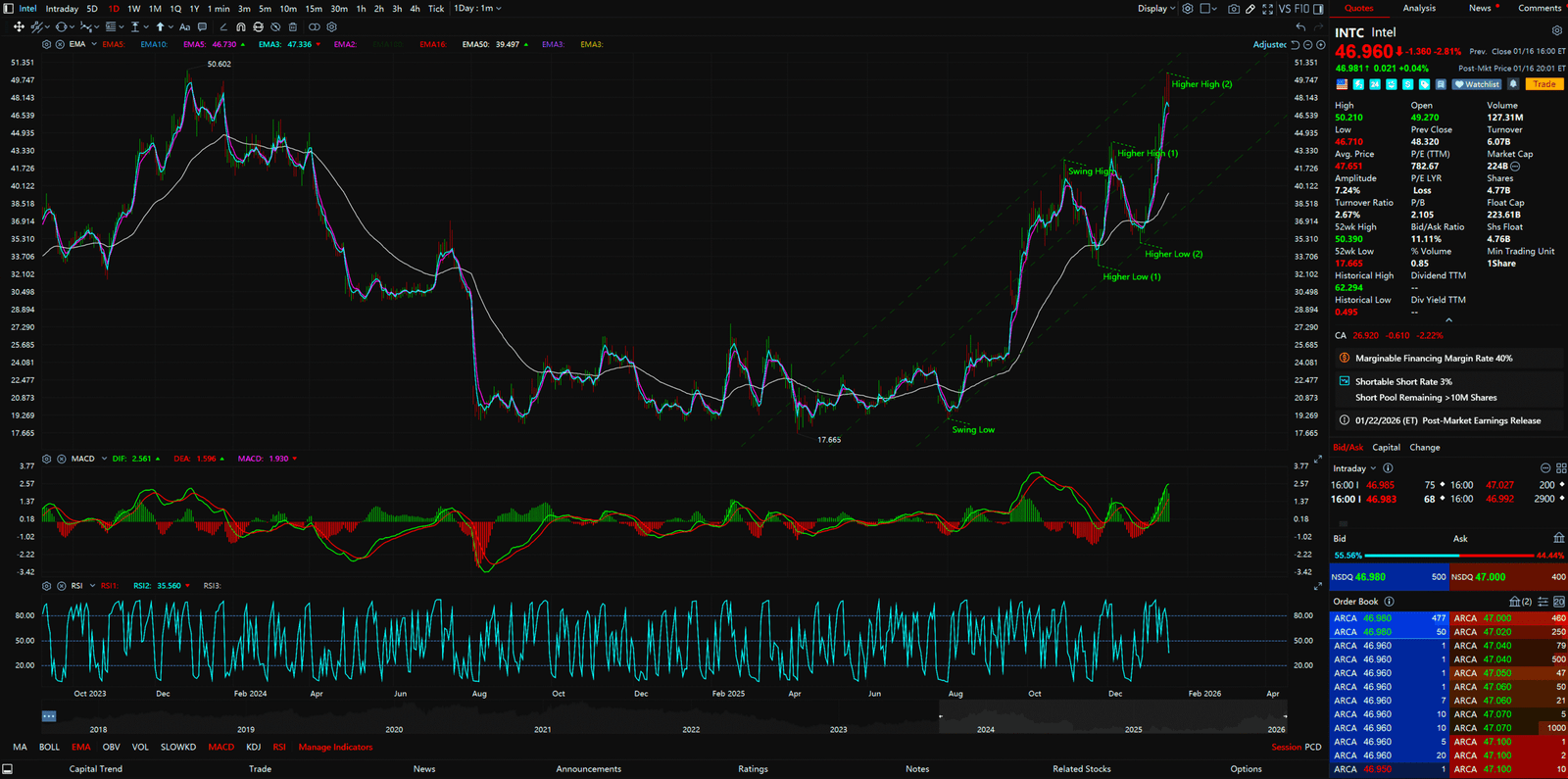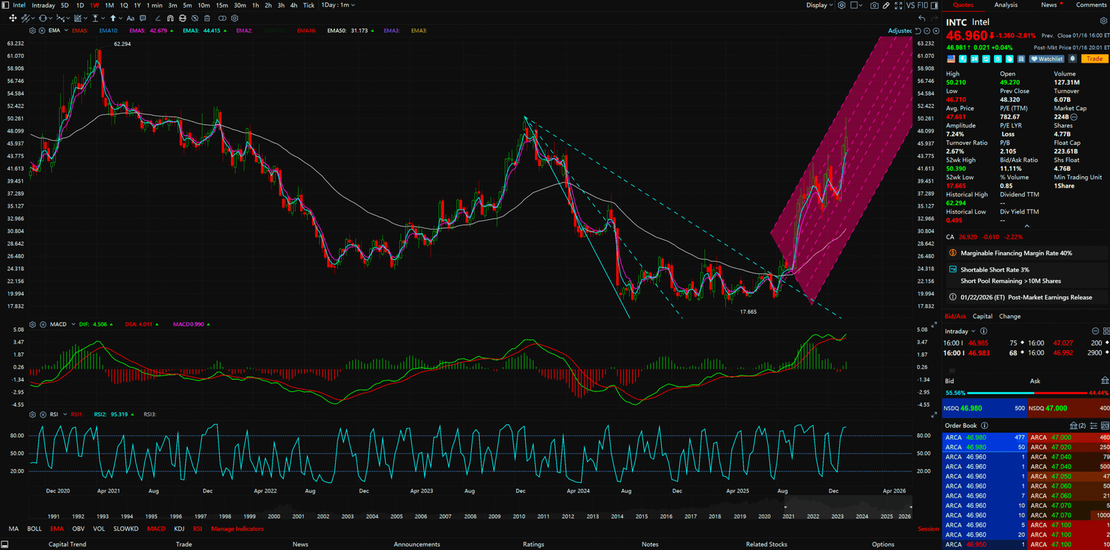 聽住,你班仲發緊夢想靠打工買樓嘅細路。如果你仲以為睇新聞、聽嗰啲著西裝打呔嘅分析師講廢話就可以財務自由,咁你注定一世做韭菜 (Sheep)。今日,我要打爆你個腦,將你從「矩陣 (Matrix)」入面拉出嚟。Intel (INTC) 唔係一隻股票,佢係一場智商測試。 當全世界都笑緊佢係「科技界恐龍」嘅時候,真正嘅獵人已經磨好刀,準備劏開呢隻肥牛。 本文分析數據截至今個星期六,美東時間 2026年1月17日 上午 11:30 (ET)。我哋運用緊嘅係最新鮮、最熱辣辣嘅市場數據。當你睇到呢篇文嘅時候,華爾街班大戶可能已經飲緊香檳,而你如果仲唔醒,就只可以食佢哋跌落嚟嘅麵包碎。記住呢個時間點,因為這可能係你人生財富分水嶺嘅開始。