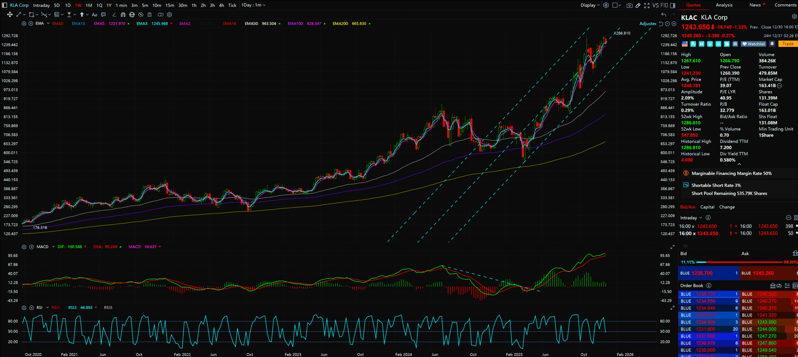 - 圖表解碼: KLAC 幾乎沒有深跌。它是半導體界的「收租股」,因為良率檢測設備利潤極高。
